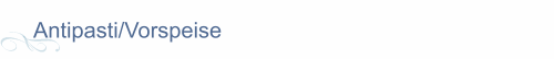 Kleiner gemischter Salat Kleiner Salat mit Krabben Großer gemischter Salat Tomatensalat mit Zwiebeln und Thunfisch Rucola-Salat mit Tomaten und Krabben Großer gemischter Salat mit Thunfisch Salat "Costa Smeralda" Eissalat, Käse, Vorderschinken, Zwiebelringe, Tomaten, Mais, Bohnen Salat "Capriciosa" Grüner Salat, Spargel, Käse, Vorderschinken, Eier, Grüne Bohnen, Thunfisch Salat "Riviera" Grüner Salat, Artischocken, Krabben, Oliven Tomaten, Radieschen, Frühlingszwiebeln, Mais Salat "Loretto" Großer gemischter Salat mit Eiern, Thunfisch, Vorderschinken, Oliven Insalata di Rucola Rucola-Salat mit feinen Parmesan-Scheiben